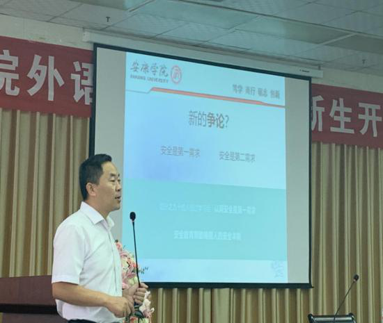 在讲座中,王开忠指出,本次讲座作为新生入学教育的重要组成部分,也是为了创建平安校园,维护大学生的人身、财产安全,提高新生的安全防范意识与自我保护能力。安全,是人最基本也是最重要的需求。安全知识教育当代大学生十分重要,我们虽身处和平时代,但身边的危险却无处不在,网络安全,道路交通安全,医疗卫生安全,自然灾害等的发作等都会危及人类的生命安全,因此安全知识显得尤为重要。王开忠从盗窃、欺诈、抢劫、流氓滋扰、火灾、溺水、交通事故、传销陷阱、网络侵害、心理疾病等各方面问题进行了详细的讲解。同时还未同学们分享了地震、消防等应急措施。