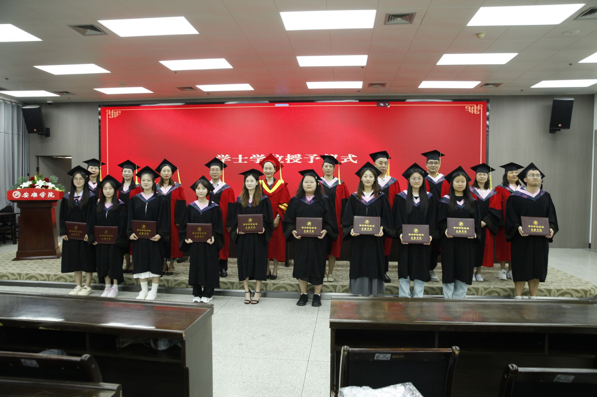在学位授予环节,副校长崔晓明带领学院领导班子及导师代表为毕业生颁授学位证书,同学们依序上台接受师长们的祝贺。毕业生们即将开启新的征程,在母校的真情祝福和期盼下,在“笃学,尚行,砺志,创新”精神指引下,相信外院学子们将会肩负起伟大时代赋予的光荣使命,谱写出绚丽的人生华章!