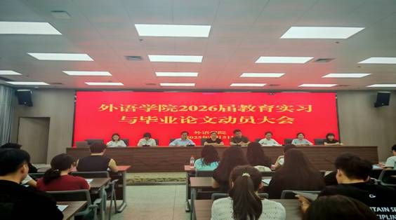 2025年9月5日下午,必赢242net官网在图书馆六楼报告厅召开2026届教育实习与毕业论文动员大会。学院领导班子、系主任、实习带队教师、辅导员及2026届英语专业全体毕业生参加了本次会议。会议由教学副院长钱莉主持。
