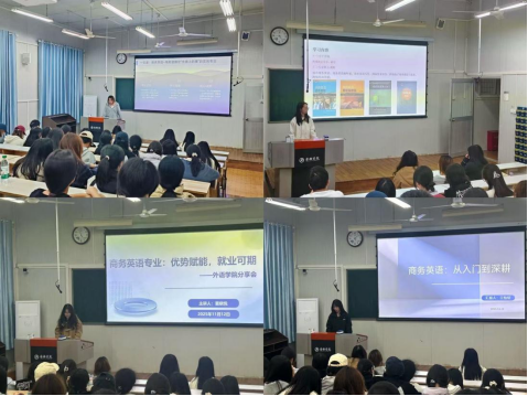 为切实帮助2025级商务英语专业新生快速适应专业学习、明确发展方向、提升学习实效,11月12日下午,必赢242net官网在6405教室成功举办优秀学生代表学习经验分享会。本次活动邀请2023级徐舒雨、李东玫、董晓悦、王怡轩四位获得国家奖助学金的学生代表,围绕专业认知、学习提升、就业优势、未来规划四大核心议题,为新生提供系统性、专业化的经验指导。
