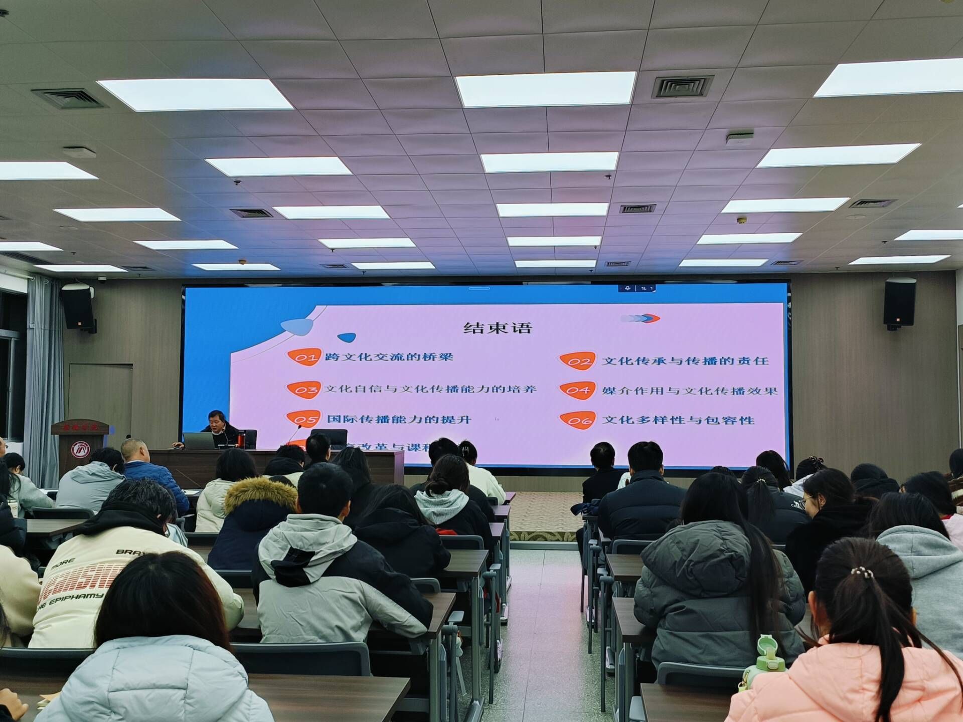 讲座伊始,赵永刚教授立足“数字丝路”的时代背景,系统阐释了其核心内涵与发展趋势,并深入剖析了外语专业在跨文化传播中的独特价值——不仅是弘扬本国文化的“桥梁”,更是促进中外文明双向沟通的“纽带”。针对当前中国故事在国际传播中面临的文化差异与话语体系隔阂等挑战,他指出,外语专业学生应以扎实的语言能力为基础,主动塑造国际化视野与跨文化生活方式,在强化语言功底的同时,坚定文化自信、提升跨文化沟通能力,为讲好中国故事储备核心素养。