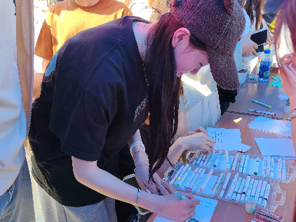 活动精心设置了五个特色区域,分别为宣泄解压区、艺术表达区、智力挑战区、潜能开发区和朋辈互助区。在宣泄解压区,同学们纷纷将写满烦恼的中英文纸条投入“情绪垃圾桶”,以此释放积聚的负面情绪,重新找回心灵正能量;在艺术表达区,同学们充分发挥创造力,用心灵绘制出一幅幅独特的画作,让内心想法鲜活地跃然“纸”上;