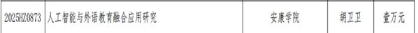 近日,根据《关于公布陕西省哲学社会科学研究专项2025年度“国际传播能力建设”重点研究项目立项结果的通知》陕社科联〔2025〕59号文件,我院胡卫卫教授申报的“人工智能与外语教育融合应用研究”刘子富副教授申报的“《理解当代中国》推动大学外语课程体系建设研究”获得立项,立项经费分别为壹万元。