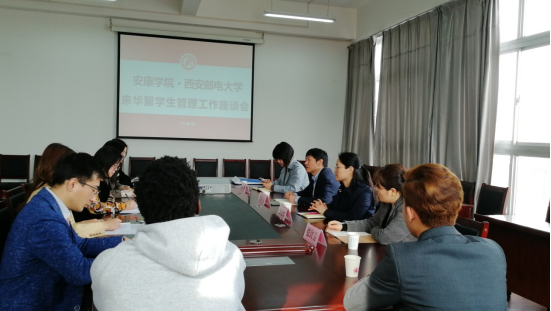 4月5日至6日,西安邮电大学国际合作与交流处处长李鹏飞、副处长廖延娜、外教及留学生管理事务科科长周敏等一行4人来必赢官网考察交流来华留学生招生、培养和管理工作。副校长张东红会见了李鹏飞一行,对李鹏飞一行来访表示欢迎,并向来宾介绍了必赢官网的历史沿革,扎根秦巴“服务基础教育、服务‘三农’、服务区域经济社会发展”,走地方化、应用型、开放式的特色发展办学情况。
